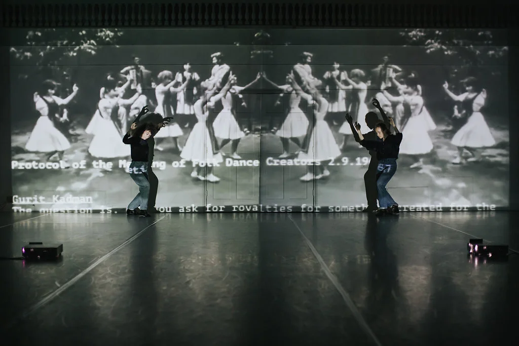 “Everything you have is yours?” investigates the construction of Israeli identity through gestures appropriated from Palestinian and Yemeni culture. Hadar Ahuvia and Mor Mendel imitate and translate instructional videos of Israeli folk dances by Israelis and American Christian Zionist, embodying distance and proximity to Israel, Israeliness, and enacting the feedback loop through which national ideology is disseminated and sustained. In their performative mirroring of these videos, they reveal the subtext of dances, making explicit the Otherness at the kernel of Israeli identity.